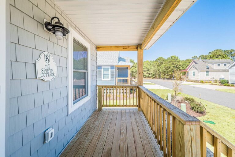 Each of our cottages has two-bedrooms and two-baths on the first level with an open loft accessed by spiral stairs on the second level for a total of 6 full-sized beds per cottage. Our modern floor plans feature a full kitchen, living room and back deck, complete with gas grill – providing the perfect place to relax and enjoy the view of the courtyard putting green.