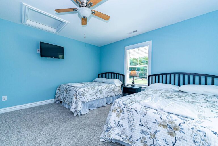 Each of our cottages has two-bedrooms and two-baths on the first level with an open loft accessed by spiral stairs on the second level for a total of 6 full-sized beds per cottage. Our modern floor plans feature a full kitchen, living room and back deck, complete with gas grill – providing the perfect place to relax and enjoy the view of the courtyard putting green.